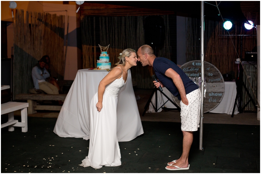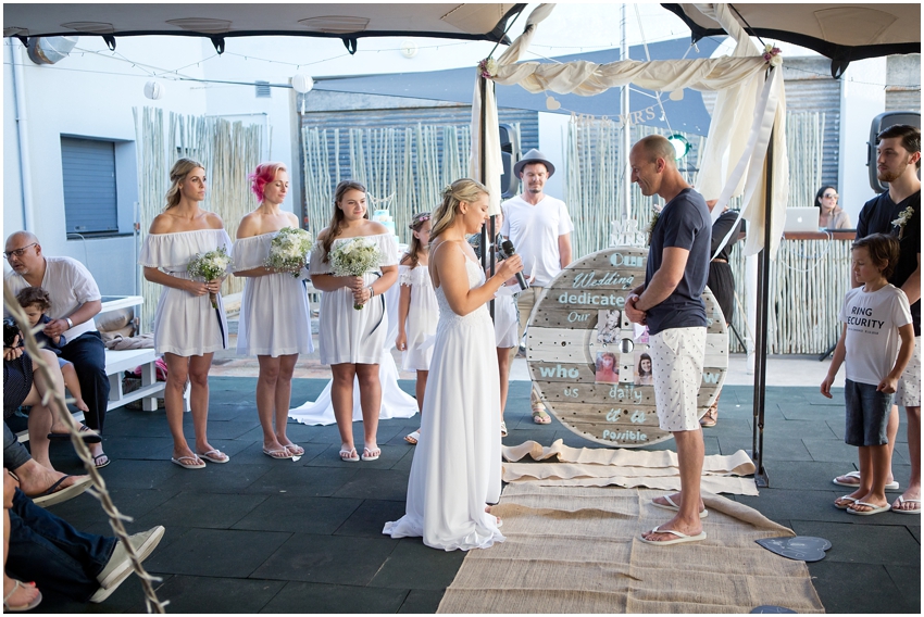 The couple chose a small, intimate beach wedding as Callum is a kite surfer and they therefore spend alot of time at the beach. They exchanged very special and personal vows in front of their closest family and friends in a ceremony officiated by Candace’s brother. The groom had his bride in tears after revealing a very fresh tattoo of a penguin on his foot, the same place she has the same tattoo! Penguins have special meaning to the couple because of the lifetime love the birds share.