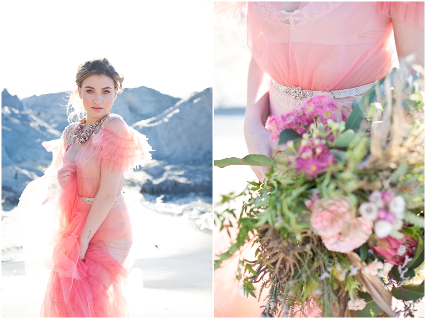 The 2019 Pantone Colour of the Year is Living Coral, what a pretty colour it is! One of my favorite Hair and Make-Up artists, Suzanne, asked me to be involved in a shoot showcasing this colour and I jumped at the chance. We picked Gordon’s Bay beach as our location and on the day the wind was howling. It made shooting a little more tricky but I just love the way the wind created movement in the gorgeous tulle of the dress, it was all just magical! I can’t wait to see the use of this colour in weddings in the coming year!